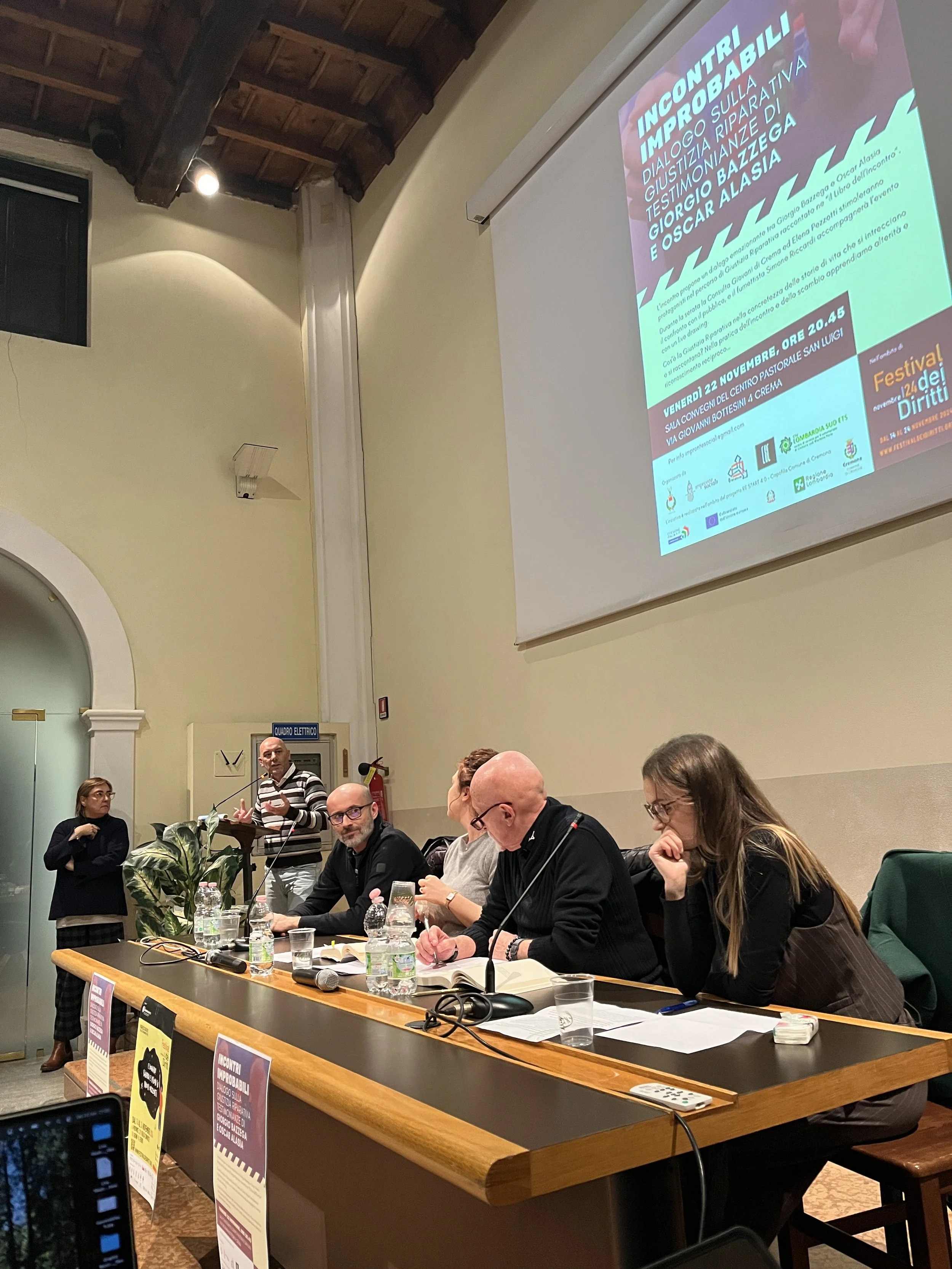Festival dei Diritti ‘24 | La potenza dell’in-contro, il percorso della Giustizia Riparativa | 1° incontro Venerdì 22 novembre (Sala Convegni del Centro Pastorale San Luigi, Crema) con Giorgio Bazzega e Oscar Alasia; 2° Incontro Sabato 23 novembre: (Centro Pastorale Diocesano, Cremona) con Giorgio Bazzega e Grazia Grena;